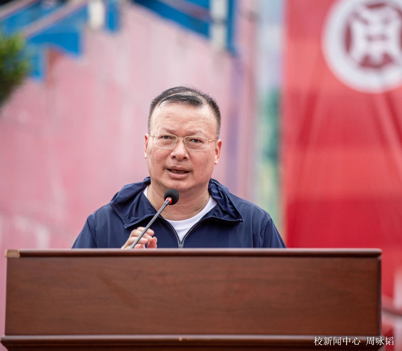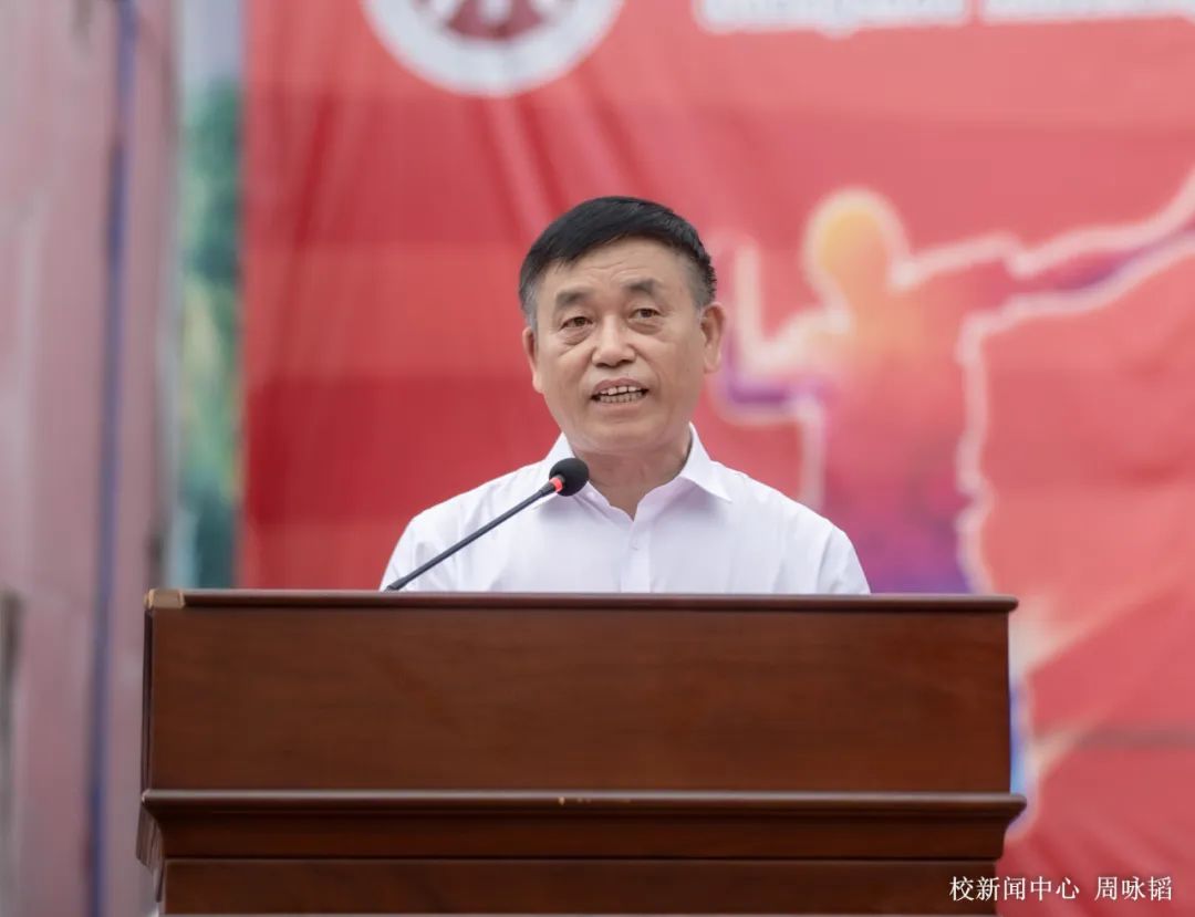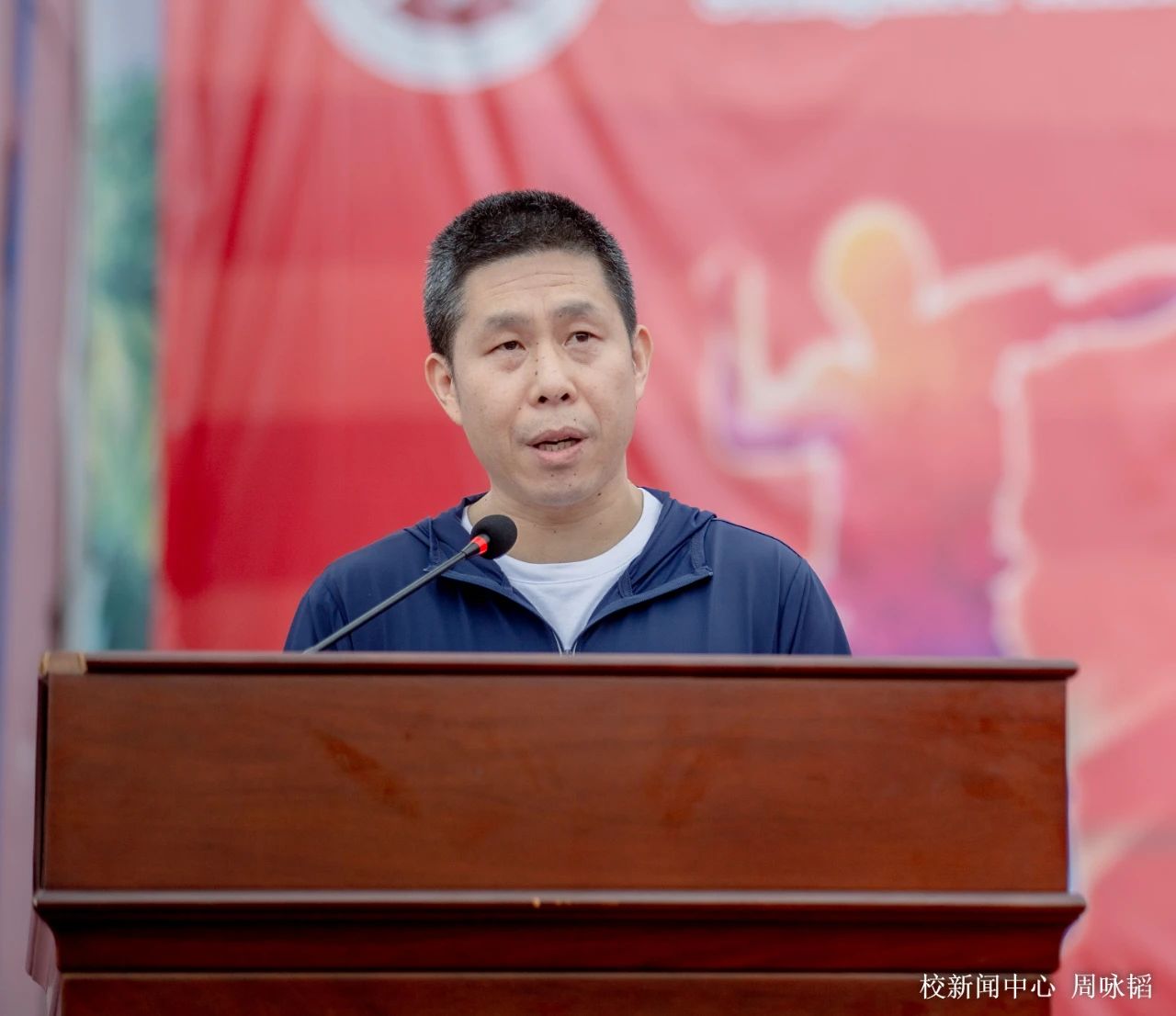 校长林琨智在开幕式讲话上强调了体育在实现中国梦中的重要作用,倡导全校师生发扬体育精神,通过运动强健体魄,为民族复兴贡献力量。他指出,师生趣味运动会既有竞技性又有趣味性,是提高师生体质健康水平的有效途径。学校始终坚持培养学生德智体美劳全面发展高素质技术人才,大力支持体育工作。他表示,举办趣味运动会是我校实施素质教育,践行“健康第一”理念的重大活动,让全校师生在运动中享受快乐,舒散压力,增强信心,展示精神面貌、身体素质、拼搏精神、团结力量的舞台!最后,他预祝运动会圆满成功。