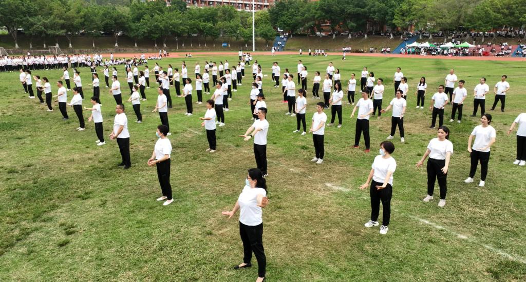 接着,百名教职工参与的八段锦健身气功操展演获得全场热烈掌声。教职工代表利用课余时间练习八段锦。整齐划一的队列,标准舒展的动作,充分将八段锦的健身精神融入到每个动作之中,展现了我校教师队伍团结向上、文明和谐的精神风貌,是我校全面落实全民健身战略的有力举措。
