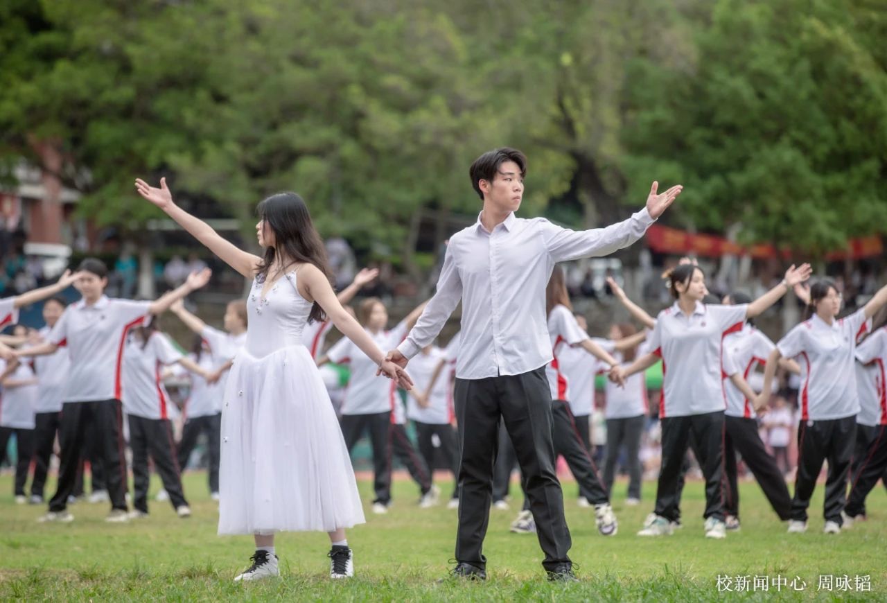 经过一天的激烈角逐,所有项目竞赛在下午5点圆满结束,闭幕式开始。闭幕式由校长助理孙虎主持。闭幕式首先由体育舞蹈社团展示优美的国际交谊舞,以天为幕,以地为台,伴着优美的音乐,200 名学生在“绿茵舞池”中翩翩起舞,展现了华职学子们的青春张力和温柔浪漫。