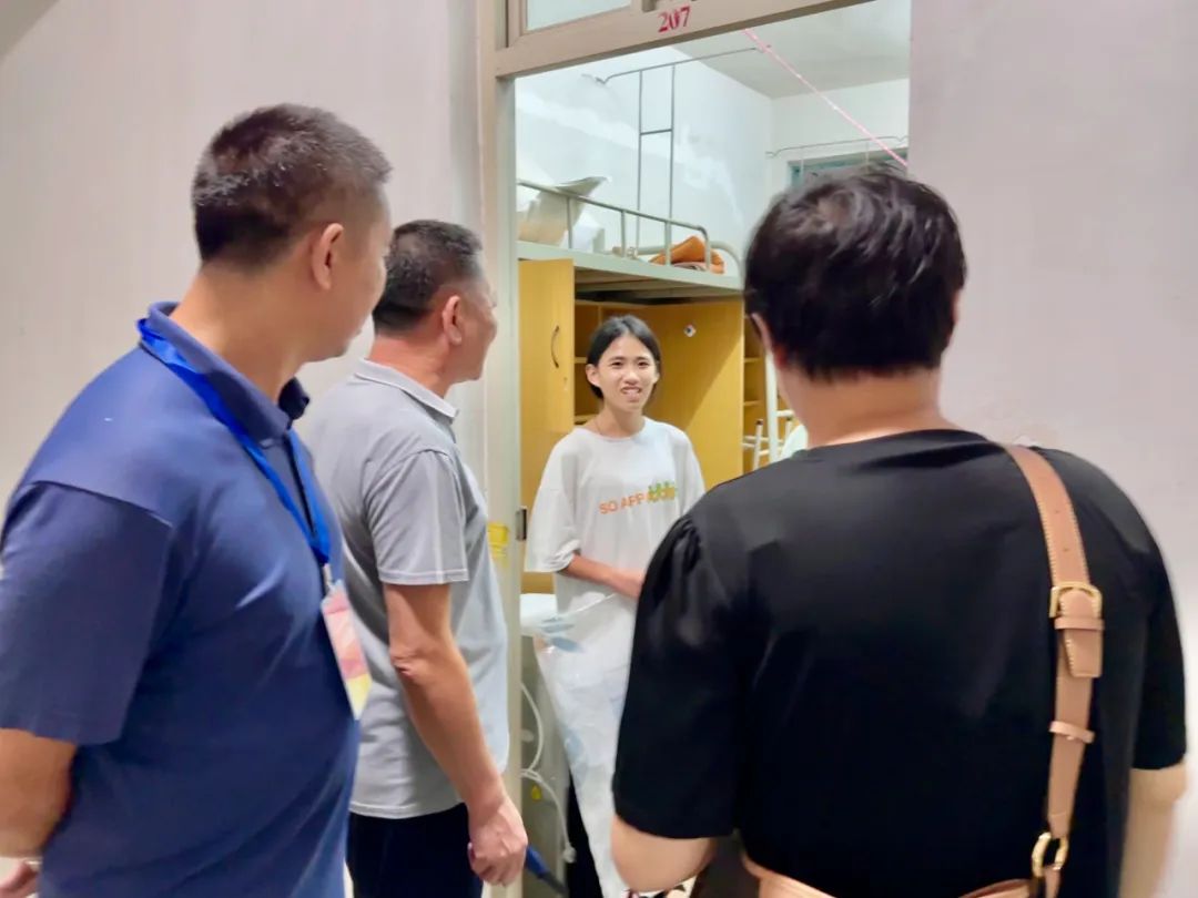 2023年9月2日,财金学院院长李哲,党总支书记顾晖,新生辅导员周冰娜老师、刘潇老师以及新生班助前往今日报到的2023级新生宿舍进行走访和问候。