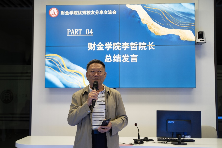 最后,李哲院长为活动作总结发言,希望所有的同学们都能够在本次优秀校友分享交流会上有所收获,明确自己前行的方向和努力的目标,为自己制定更加合理的规划。