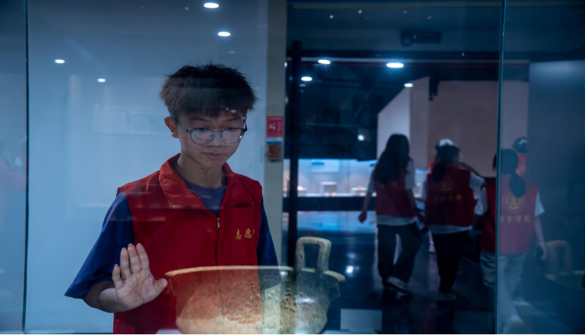 他们聚精会神地观赏着那些珍贵的文物