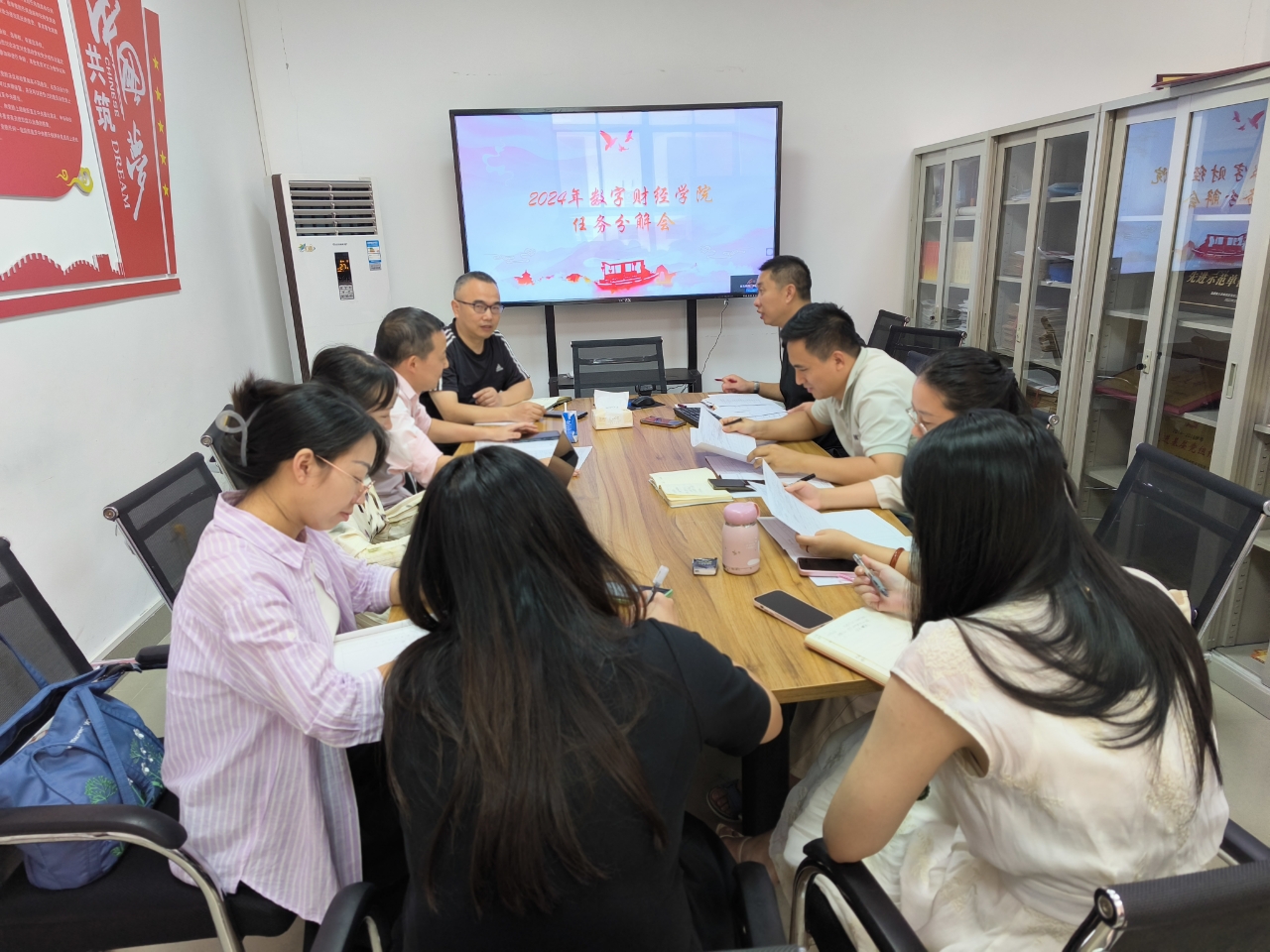 10月15日,根据学校目标管理和绩效考核办法,数字财经学院杨玲院长、李纯辉和顾晖副院长主持召开了“2024年数字财经学院任务分解会”及敏行数据公司融入专业建设第二次会议,各专业负责人参会。