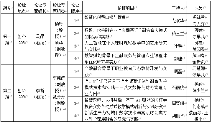 本次开题论证工作覆盖了多个项目,包括精品在线开放课程、教育教学改革研究与实践项目等。项目涉及智慧化税费申报与管理、产教融合背景下职业教育形态教材开发与实践、数智时代金融专业“岗课赛证”融合育人模式的探索和实践等多个领域,旨在通过改革与创新,提升教育教学水平,培养更多高素质技能型人才。