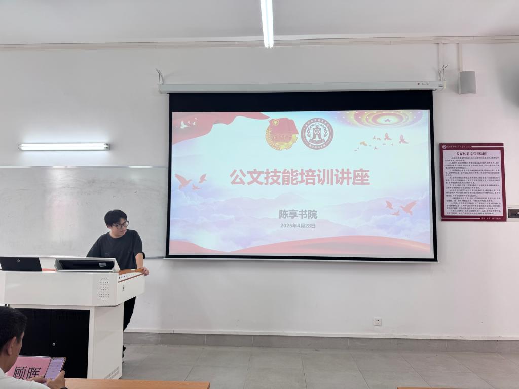 [2025年4月28日] 由数字财经学院主办的“公文技能培训讲座”在二号楼302教室顺利举行。本次讲座特邀数字财经学院副院长顾晖担任主讲嘉宾,旨在提升师生的公文写作与处理能力,规范公文格式,为学院各项工作的高效开展奠定坚实基础。