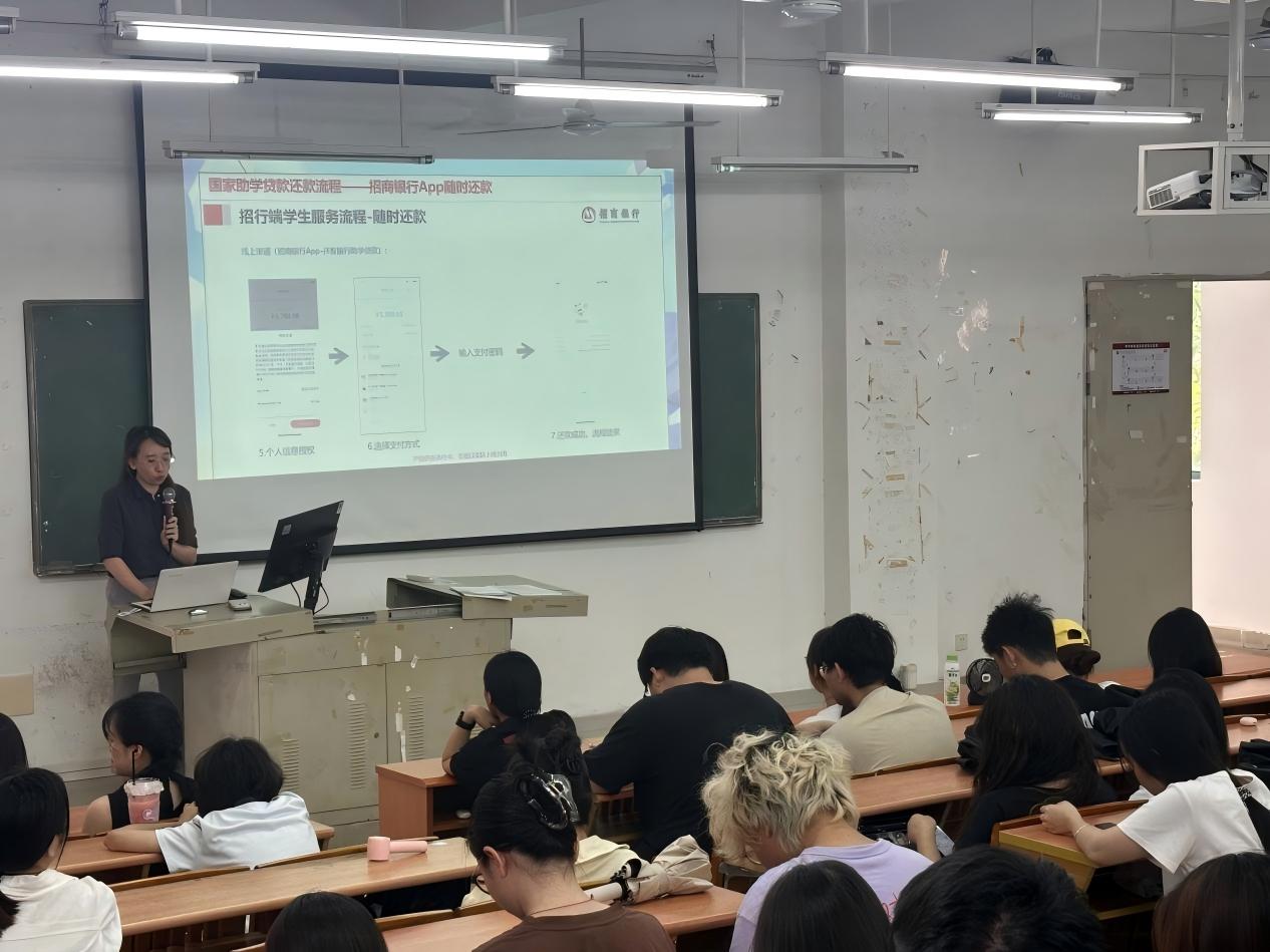 首先,招商银行工作人员通过图文演示与案例分析,详细讲解贷款申请条件、办理流程、还款政策及征信维护要点,重点强调“在校期间财政全额贴息”“毕业后5年还本宽限期”等优惠政策。针对不同专业学生,结合就业前景分析贷款对职业规划的长期价值,提供个性化咨询服务。互动环节中,学生就贷款额度核定、异地还款操作等问题踊跃提问,银行专员逐一解答并建立专项答疑群,确保后续服务持续跟进。此外,本次活动还融入诚信教育主题,通过真实案例警示征信违约后果,引导学生树立理性借贷观念。