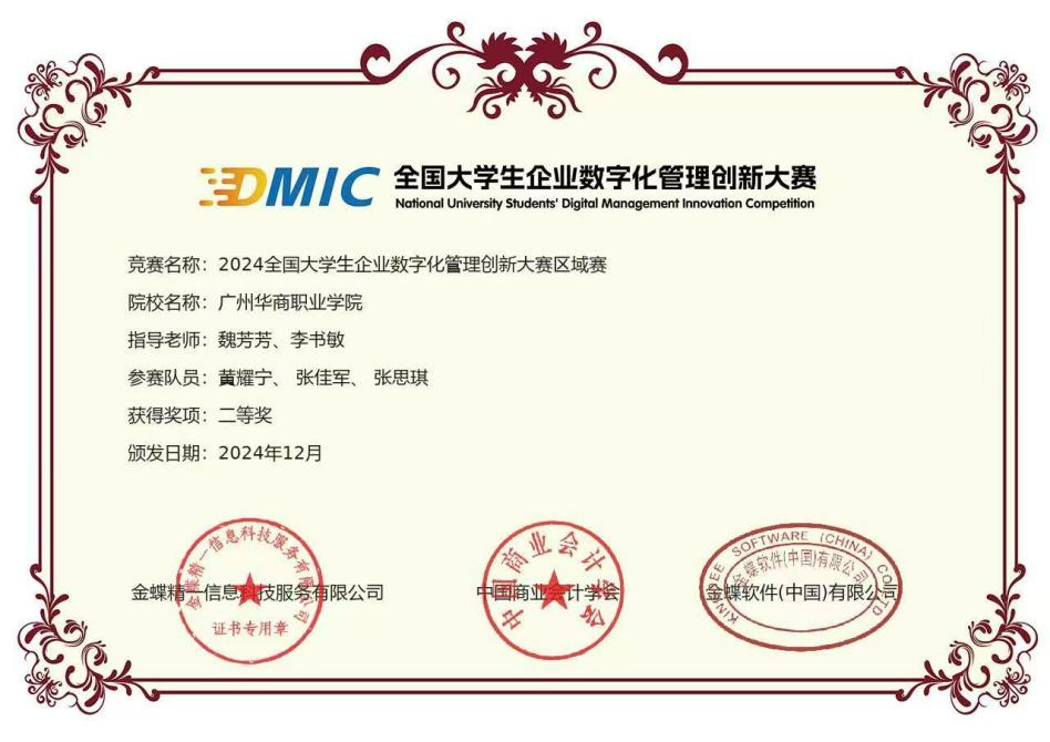 “这些荣誉是订单班‘全面育人’的成果。” 黄耀宁说,订单班不仅抓专业,还鼓励参与竞赛与志愿活动。如凭借金蝶 ERP 基础,他和团队在创新大赛中获奖;心理健康竞赛则让他收获责任感。
