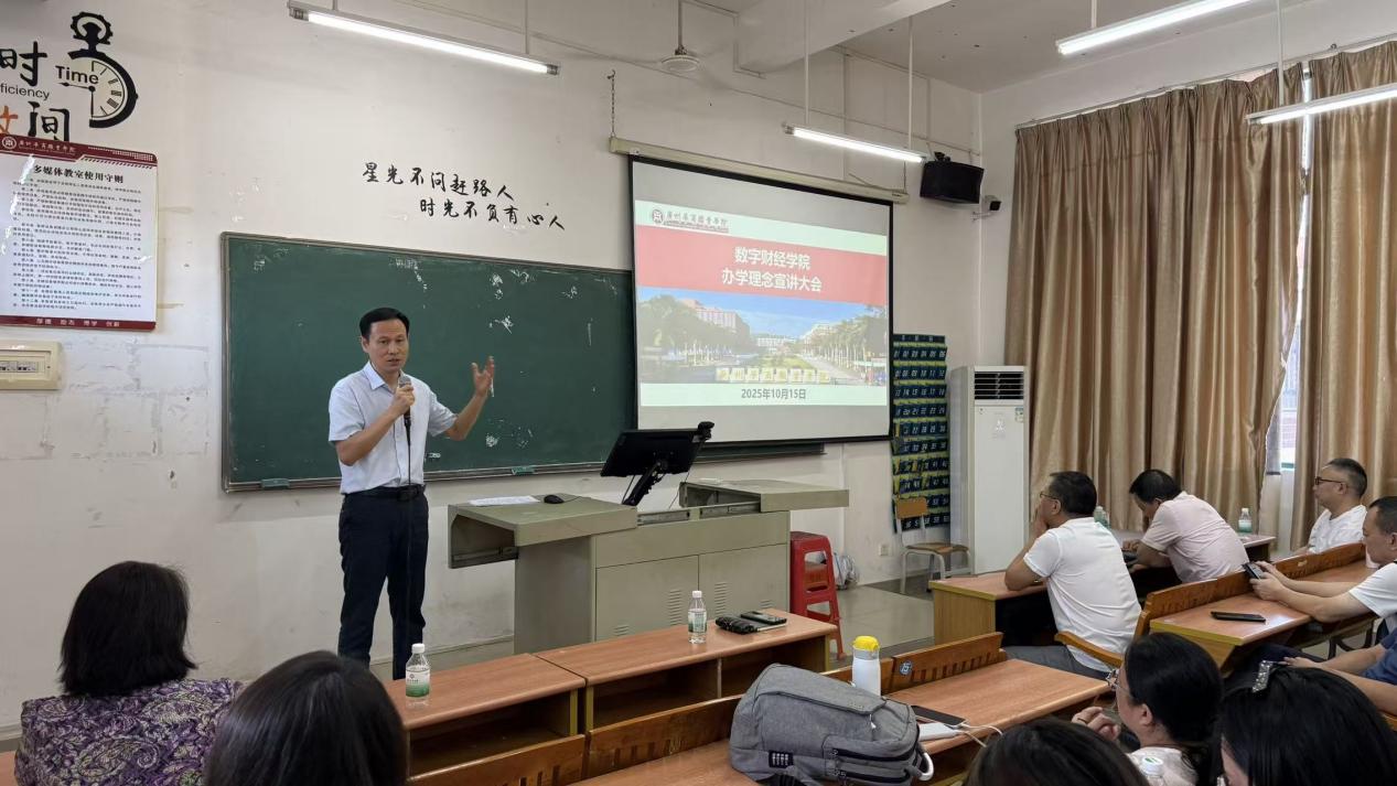 2025年10月15日下午14:30,数字财经学院在博学楼B506召开全体教师会议,江门校区教师通过腾讯会议线上同步参会。会议由杨玲院长主持,李纯辉副院长作主题发言,童国梁副校长出席会议并作指导讲话,数字财经学院全体教师参加。