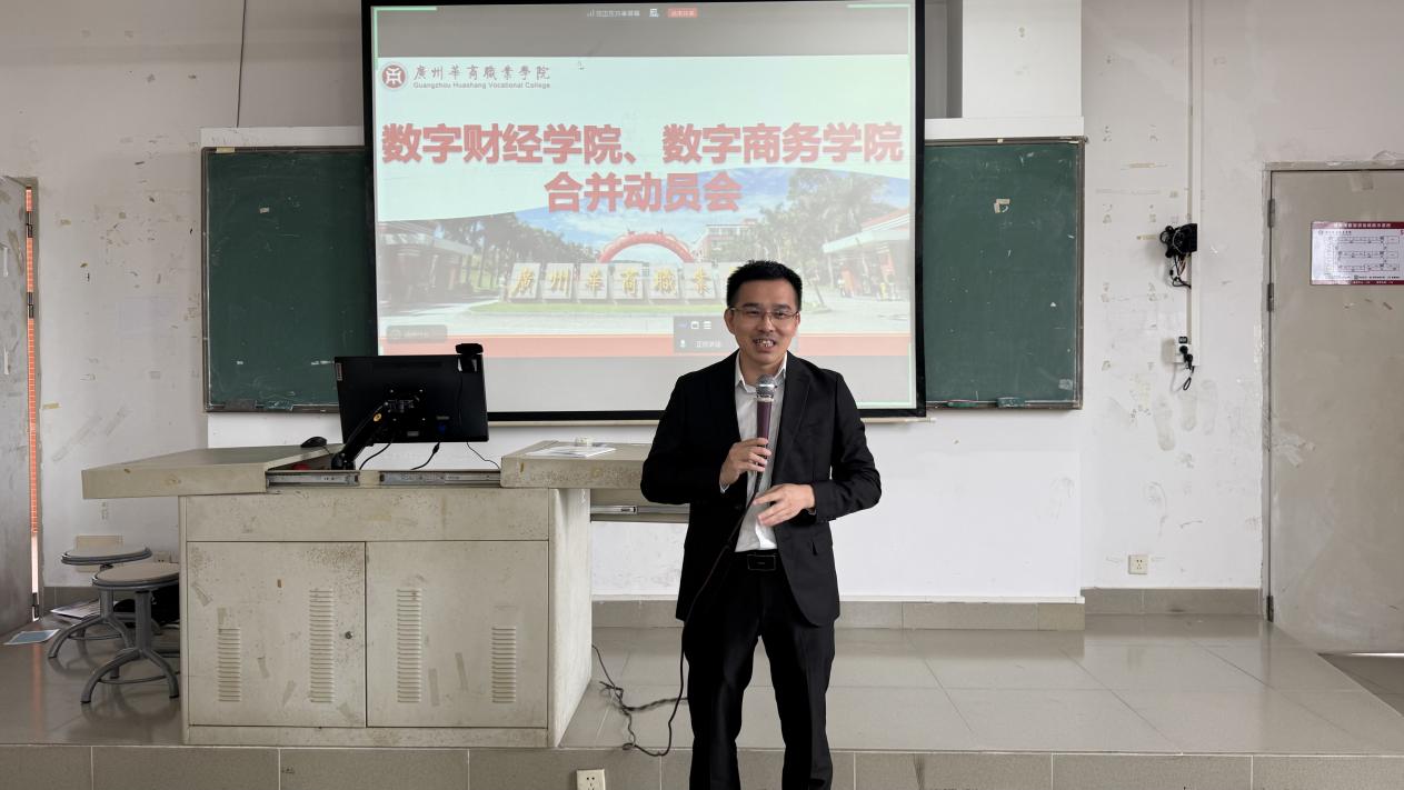 朱小平副校长宣读了《广州华商职业学院关于召开二级学院调整动员会的通知》,他强调,学校此次调整是主动对接国家职业教育高质量发展战略、深化职业教育本科建设的重要举措。面对产业数字化、智能化转型的浪潮,学校将坚持以专业群对接产业链,优化专业结构布局,推动专业特色化、品牌化发展,提升资源配置效能与人才培养精准度,进一步增强服务区域经济社会发展的能力。