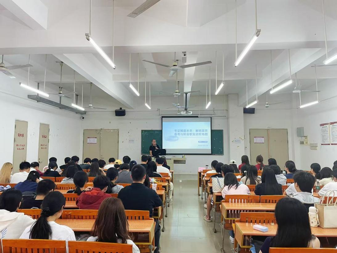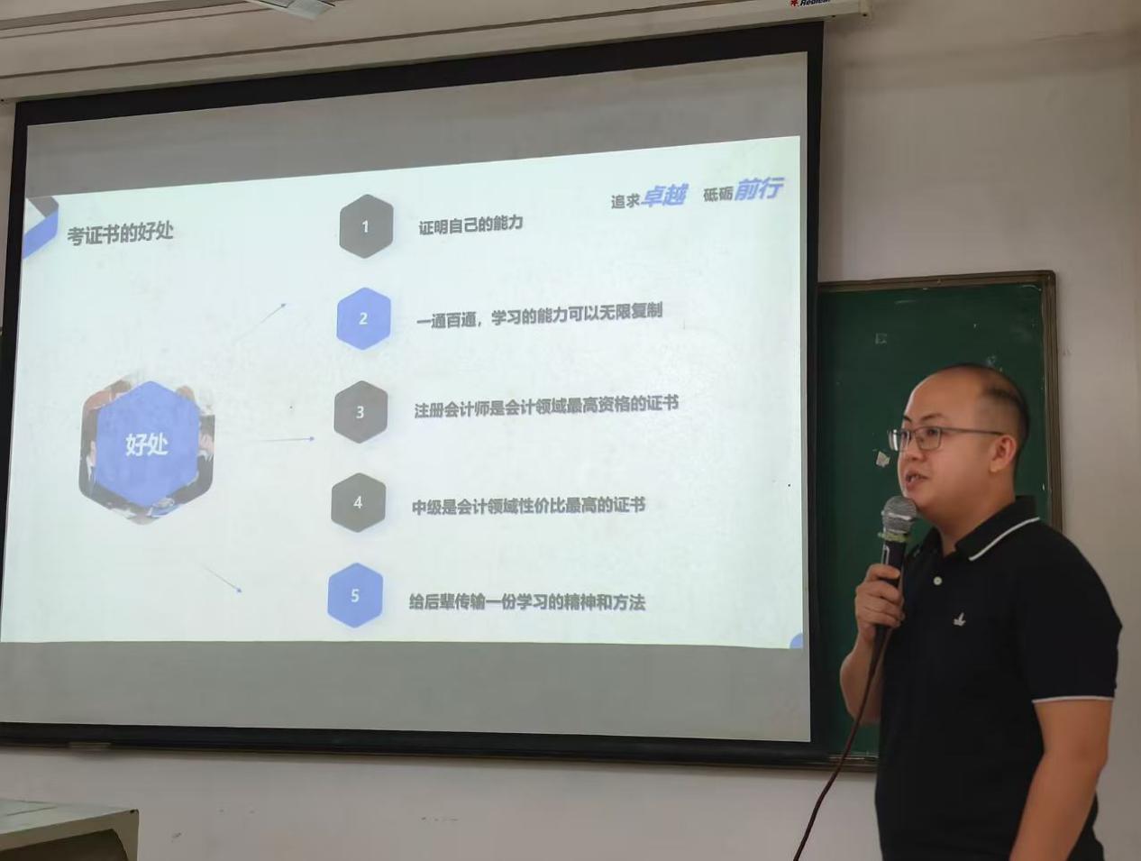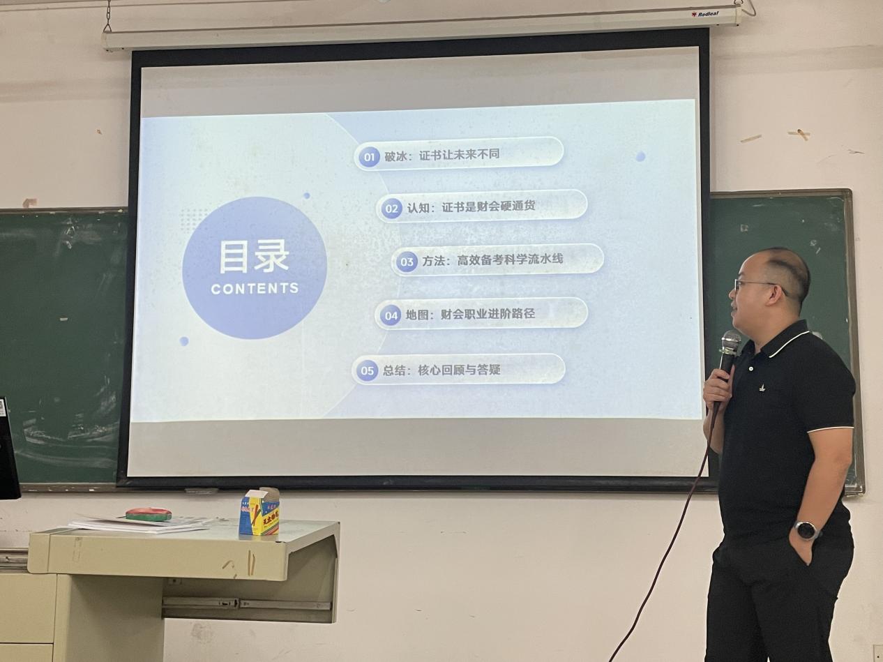 2025年10月29日下午,广州华商职业学院数字财经学院在博学楼B207成功举办“考证赋能未来:解锁高效备考与财会职业进阶地图”职业规划专题讲座。本次活动在大一新生处于专业迷茫探索期、大二学生步入能力提升与方向抉择期、大三学生面临实习求职关键点的背景下适时举办,旨在帮助学生构建专业认知框架,强化财会类专业学生的职业发展规划能力,引导学生科学规划证书考取路径,切实提升就业竞争力。 讲座由数字财经学院统筹指导、会计协会具体承办,特邀中国注册会计师、资深财务专家及创业者——广东华易信会计师事务所有限公司丁河杰总经理担任主讲。丁总结合个人职业发展经历,从财会专业毕业生成长为注册会计师与企业创始人的实践路径出发,以“证书认知—备考方法—职业地图”为主线展开了精彩地分享。 他首先引导同学们重新审视专业证书的核心价值,指出财会类证书不仅是职业准入的“敲门砖”,更是构建系统性知识体系、形成个人职业“护城河”的战略资产。在备考方法方面,他提出“规划—输入—输出—复盘”四步学习闭环,为学生们提供了一套可复制的高效备考方法论,并特别强调了时间管理与心态维护在备考持久战中的关键作用。此外,他还系统梳理了从初级会计职称到注册会计师的证书进阶路径,详细解读了相关证书之间的互免政策,为学生勾勒出清晰的职业成长阶梯。 本次讲座在学年承上启下的关键节点,成功地为数字财经学院学子注入了一剂“强心针”,既为新生指明了起跑方向,也为准毕业生增添了冲刺信心。未来,学院将继续立足学生发展的关键阶段,精准对接需求,搭建更多元的学习交流平台,全面赋能学生的成长与成才。 图文:马瑞华 初审:刁慧娜 复审:潘紫轩 终审:杨玲