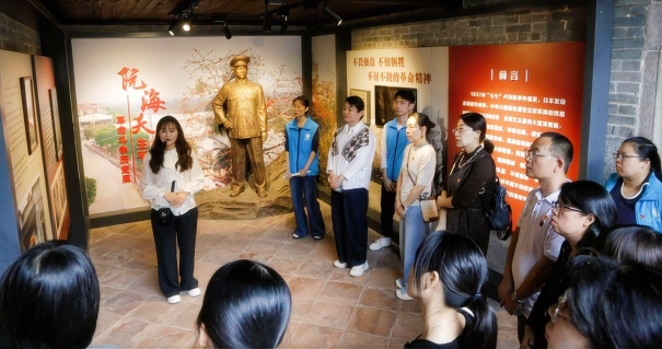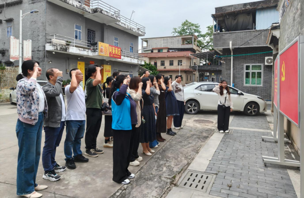下午2:50,在村委工作人员的引导下,全体党员教师与社工前往阮海天故居——这一承载着革命记忆的红色教育基地。踏入故居,教师们首先重温入党誓词,铮铮誓言回荡在庭院中,唤醒内心的责任与担当。随后,导游以生动的语言讲述阮海天同志的革命经历:从加入中国共产党、投身抗日救亡运动,到扎根基层心系群众、为国家和人民事业奉献终身的感人事迹,同时结合故居内的历史文物,深入解读革命先辈“扎根基层、服务群众”的精神内核。