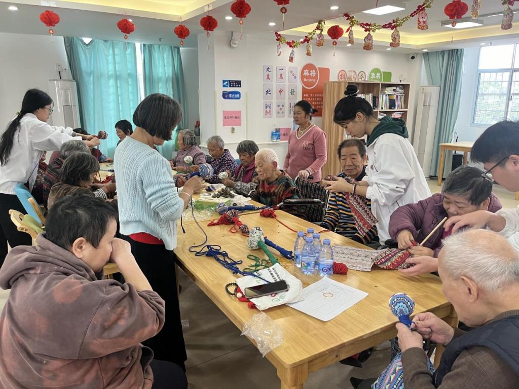 2024年12月26日,数字商务学院资助中心志愿者携手仙村颐康中心开展艾草锤制作活动,以传统手艺为媒,通过示范指导、代际互动,助力老人锻炼手部机能。长者们在志愿者的暖心陪伴下,边制作边追忆端午习俗,艾香氤氲间定格温情时光。活动既传递健康关怀,更编织情感纽带,让冬日敬老院满溢温情与欢笑。