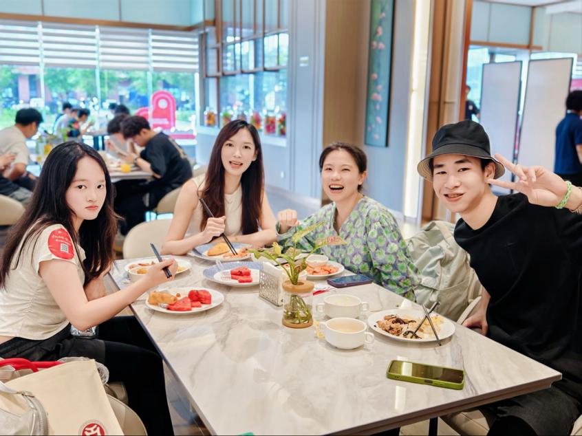 当主会场活动圆满落幕,温馨的情谊仍在延续。老师们热情邀请校友们移步弘美餐厅,共赴一场充满烟火气的团圆宴。餐厅内,精心准备的佳肴香气四溢,如同记忆中的味道一般令人安心。大家围坐一桌,时而举杯相庆,时而低头细语,从追忆校园趣事到畅谈人生感悟,从分享生活点滴到交流行业动态,欢声笑语在餐厅内回荡。往昔的师生情在推杯换盏间愈发醇厚,曾经的同窗谊在美食相伴中更加绵长,每一个瞬间都成为了值得珍藏的温暖记忆。
