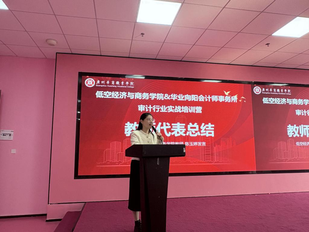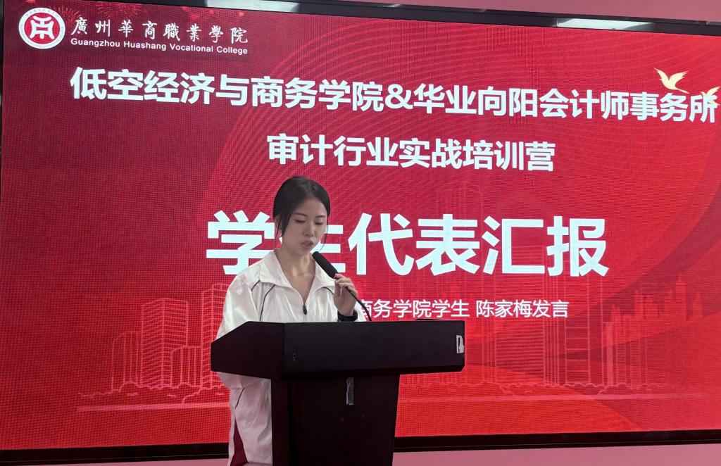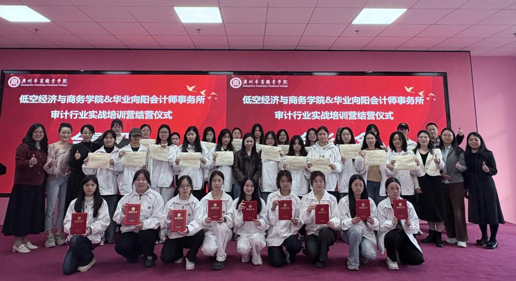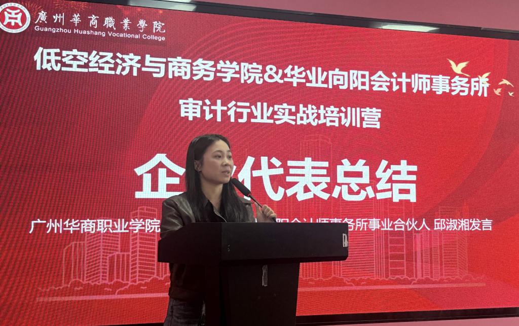 近日,广州华商职业学院低空经济与商务学院与华业向阳会计师事务所联合举办的“审计行业实战培训营”结营仪式在广州华商职业学院创科713举行。华业向阳会计师事务所事业合伙人邱淑湘女士,低空经济与商务学院张丽菠副院长、潘虹副院长、黄泽栋副院长、财务与会计教研室刁慧娜主任,以及周磊、龙双华、王溪、陈玉婷、柳晓倩等教师代表共同出席,与参训学员共同回顾成果、展望未来。