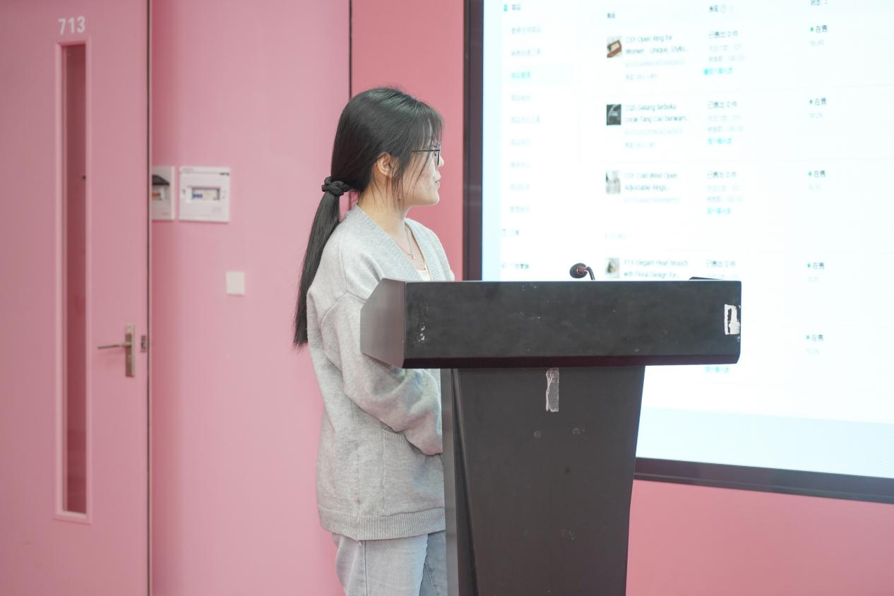 首先,指导教师黄雪芳就本次课堂革命项目的开展情况和学生的表现进行总结,她在发言中指出,本次跨境电商课堂革命项目把TikTok店铺运营、短视频拍摄与推广、TikTok直播带货等真实的企业工作任务融入课堂中,让学生在真实场景中完成实践学习任务,学生的课堂积极性与参与度得到大幅度的提升,虽仍有不足之处,但期望学生在接下来的新学期能再接再厉,获得更大的进步。
