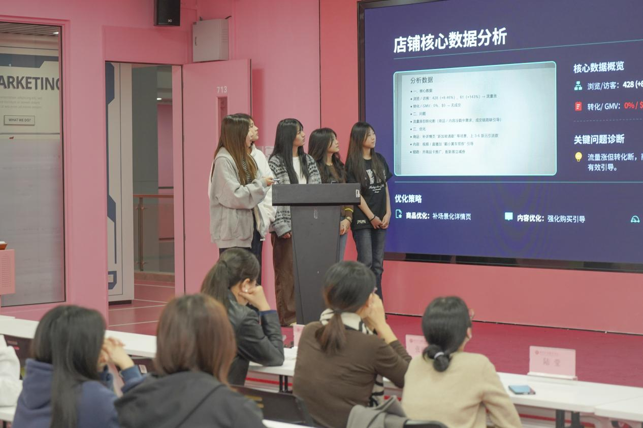 在本次汇报的最后,学院副院长、项目总负责人张丽菠作总结发言。她指出,本项目的实施不仅是一次课程改革实践,更是学院在产教融合背景下探索“真实平台进课堂、真实业务进教学”的重要尝试。学院将持续深化校企协同育人机制,以课堂革命为抓手,推动教学内容与行业发展、岗位能力要求的深度对接,为跨境电商专业学生提供更贴近产业、更加真实的成长场景,促进学生在专业技能与职业素养方面实现协同提升。