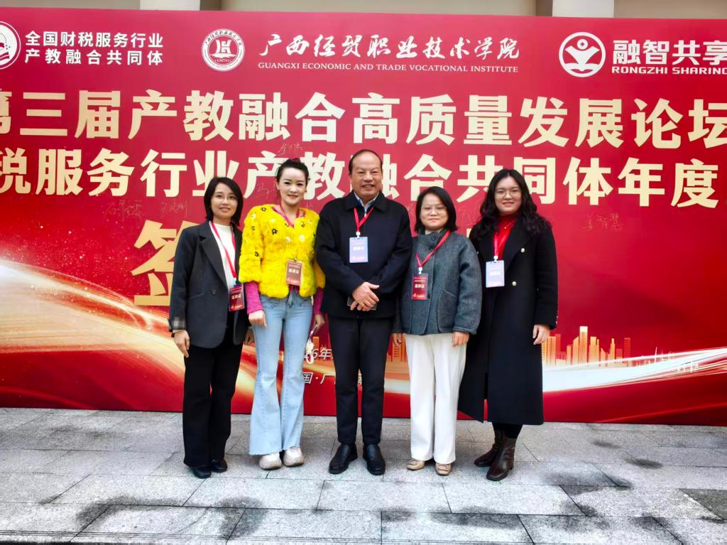 1 月 10 日至 11 日,全国财税服务行业产教融合共同体年度工作会议在广西南宁隆重召开。广州华商职业学院低空经济与商务学院杨玲院长、潘虹副院长、财务与会计教研室主任刁慧娜老师、骨干教师李宇媛老师一同受邀参会,与来自全国高校、行业企业的专家学者齐聚一堂,共商产教融合创新发展,探讨数智化背景下财税人才培养新路径。