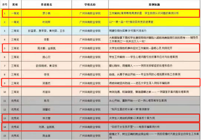为充分展示辅导员工作的优秀成果,推广先进经验,提升辅导员工作的科学化水平,表彰先进,推动高校思想政治工作队伍建设,广东省高校开展了广东高校学生工作案例评优活动。在党总支金新凯副书记的指导下,财金学院在广东高校思想政治工作优秀案例征集评选活动中获奖5项,一等奖罗小燕,三等奖2项周冰娜、郑傲然,优秀奖2项林汶樱、刘潇。