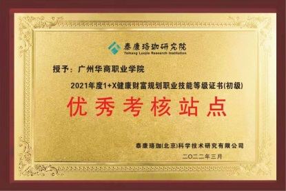 日前,由泰康珞珈(北京)科学技术研究院有限公司举办的全国2021年度“1+X”健康财富规划等级证书考评圆满结束。我校荣获健康财富规划(初级)“优秀考核站点”称号,财金学院郭建老师、黄艳丽老师获评“优秀指导教师”。