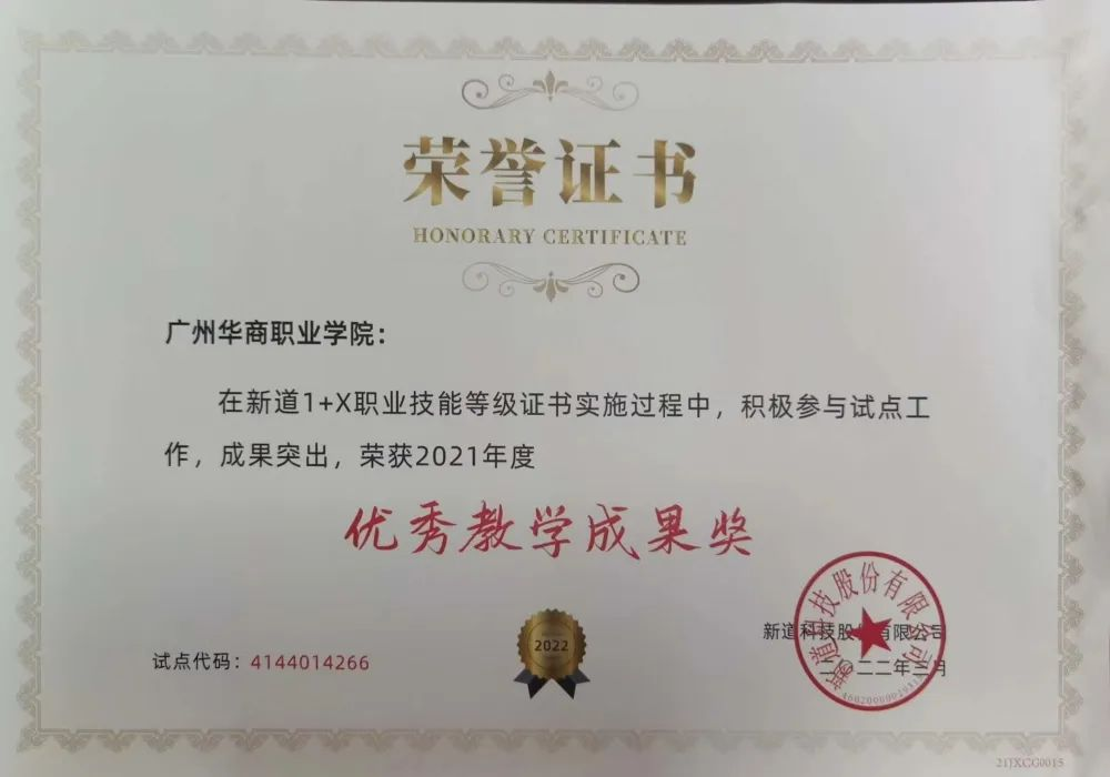 2021年财金学院在“1+X”职业技能等级证书考试中取得优异的成绩,其中财务数字化证书(初级)通过率高达100%,30名考生全部顺利通过考试,财务数字化证书培训成果显著,因此,我校荣获了2021年度新道1+X职业技能等级证书培训的“优秀教学成果奖”。
