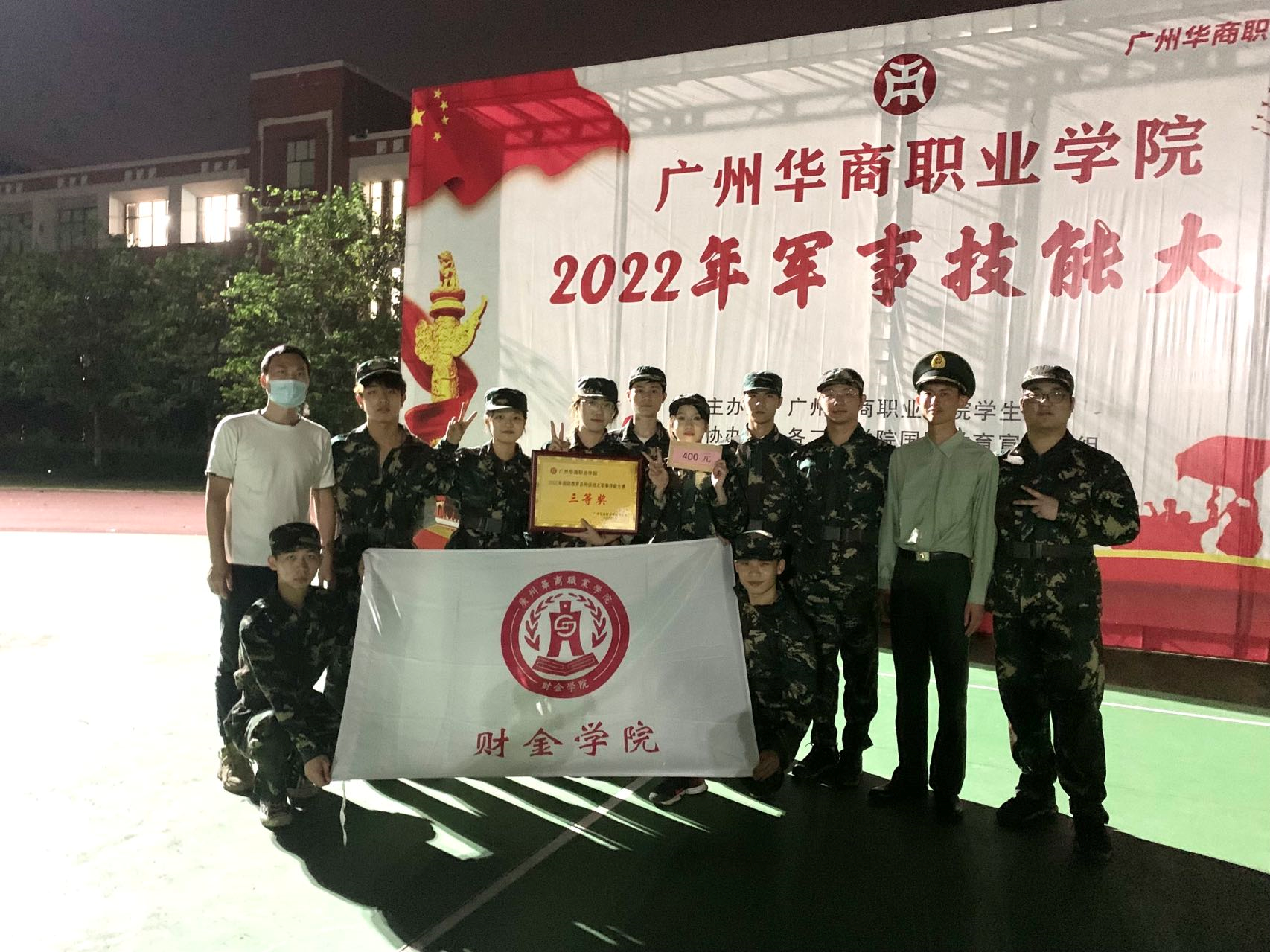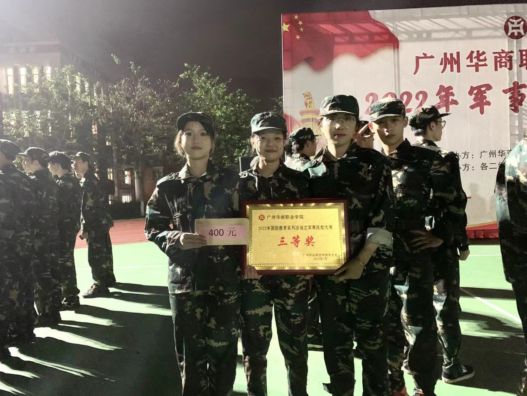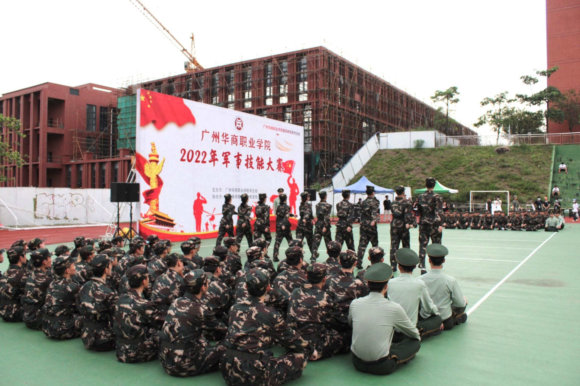 为进一步提高我校大学生军事技能水平、国防战备观念、爱国爱军情怀以及国防军事素养,广州华商职业学院于2022年5月31日下午18:30在东区操场举办第一届军事技能大赛。