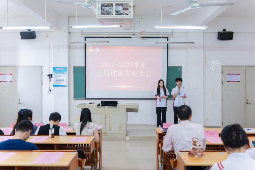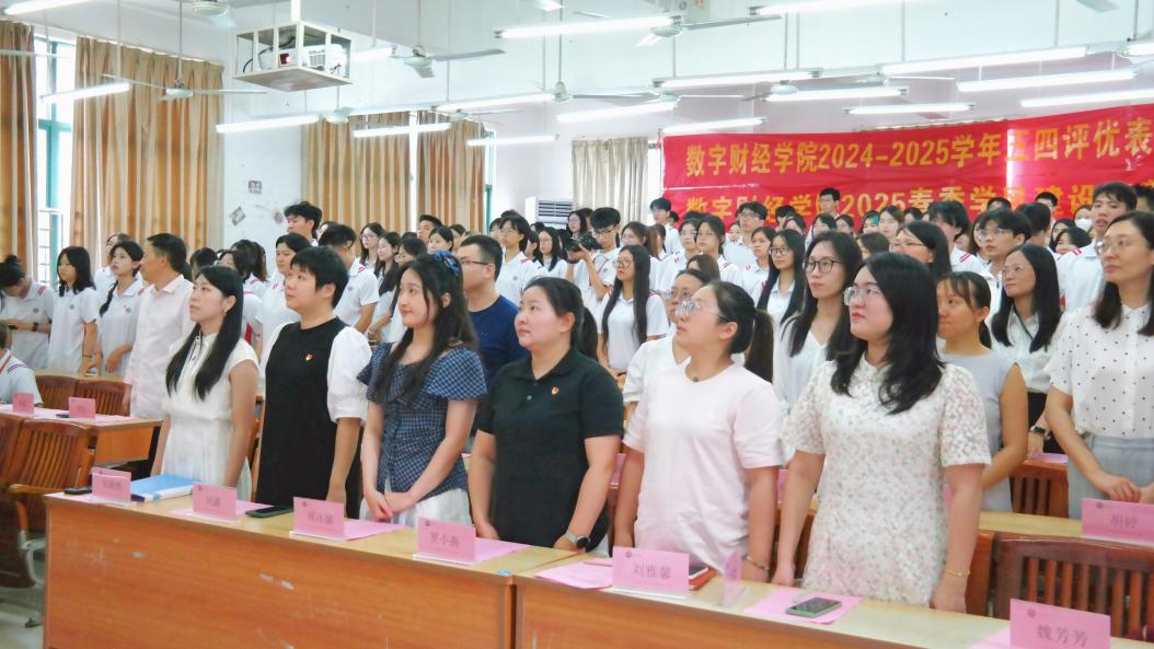 为深入学习贯彻习近平总书记五四青年节对全国广大青年寄语精神,为表彰先进,树立典型,激励各级团组织和广大团员青年挺膺担当,再创佳绩。数字财经学院于2025年6月18日下午在(广州校区)博学楼B501、(江门校区)2号教学大楼308课室召开2024-2025学年五四评优表彰大会。 主持人致辞 介绍到场领导、嘉宾 奏唱中国共青团团歌 院团委郑傲然书记宣读“数字财经学院关于表彰2024-2025年度五四评优表彰的决定”。希望获得表彰的集体与个人能够保持谦逊、锐意进取,再攀新高,再续新功。 颁奖环节 校园文化积极分子 优秀志愿者 优秀共青团员 优秀共青团标兵 优秀共青团干部 优秀社团 第三届“体育文化节”跳绳比赛-团体第三名、单人二等奖 第三届“体育文化节”羽毛球精英杯比赛-团体第一名 院五四红旗团支部 院学生会、校艺术团表演《世界赠与我的》 院学生会、校艺术团合唱表演《世界赠予我的》,借旋律传递青春对世界馈赠的思索,呼应赓续使命、发扬五四精神的大会主旨,激励团员在中国式现代化征程中,拥抱馈赠、勇担责任,让青春绽放光彩。 此次五四评优表彰大会,彰显青年榜样的昂扬风貌,激发青年学子的昂扬斗志。我院学子应传承五四精神内核,以进取之姿汇聚合力,携手推动学院发展开创新局面,向着更高远的目标奋勇进发!
