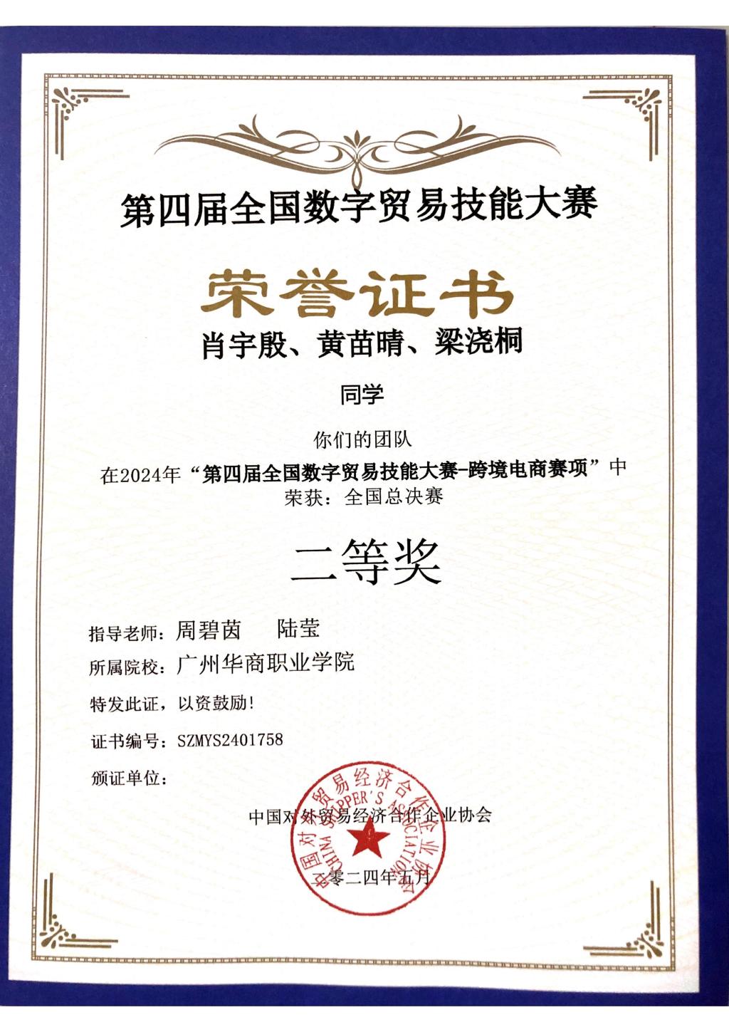 (二)2024年“第四届全国数字贸易技能大赛-跨境电商赛项”全国总决赛二等奖