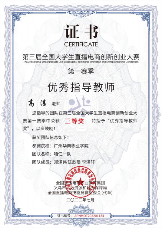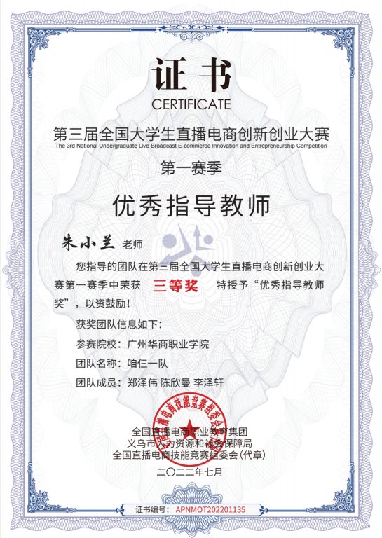 2.2023年广东省“互联网直播营销”大赛,三等奖。