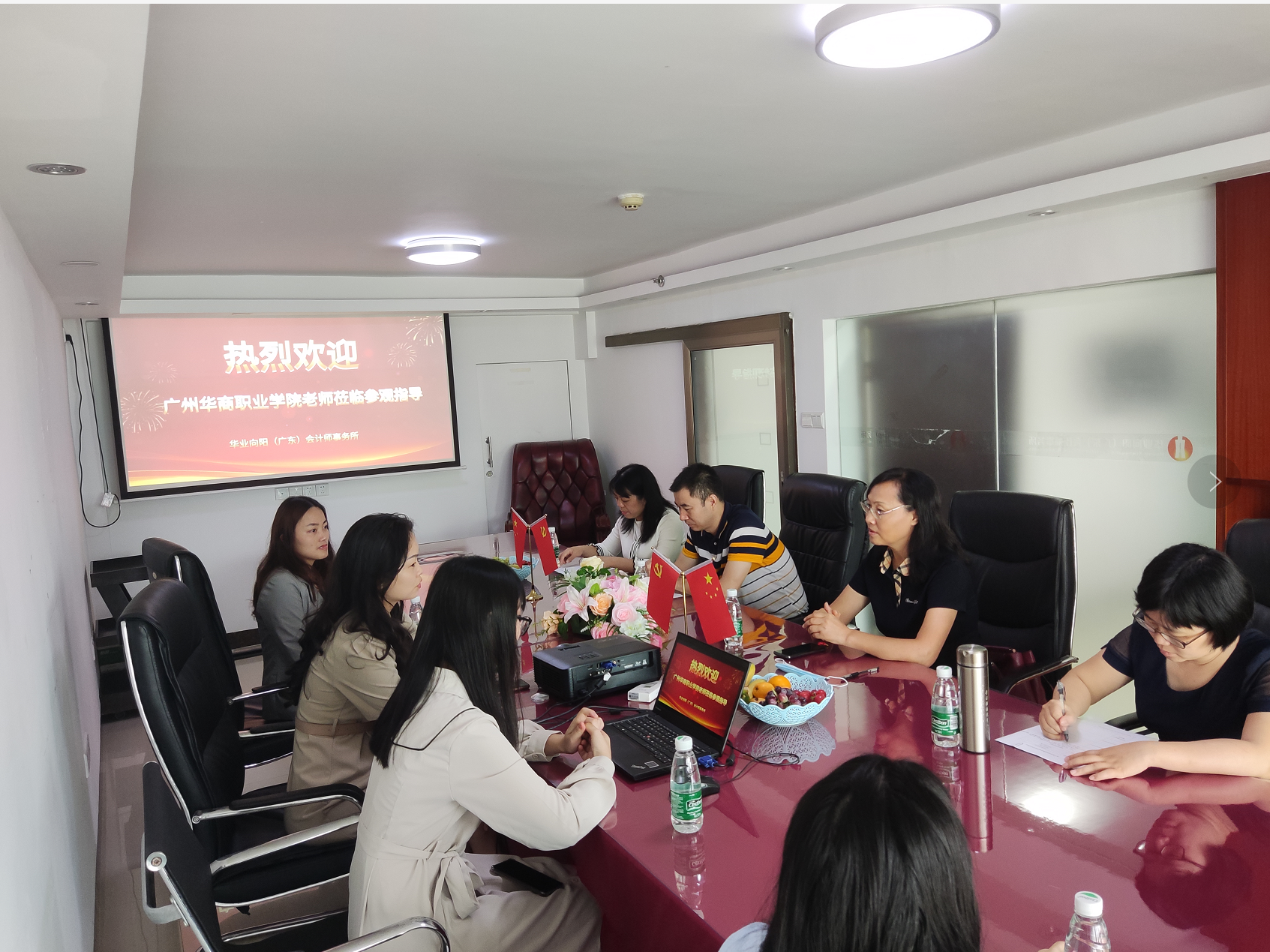 2021年4月13日上午,广州华商职业学院财金学院刘惠玲院长、陈少兰副院长、龙双华老师、涂早武老师一行4人先来到华业向阳(广东)会计师事务所看望顶岗学习学生。
