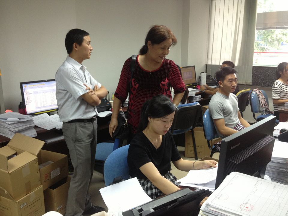 为加强对实践教学的管理,零距离了解会计系学生顶岗实习教学工作,听取实习单位对我系实习生的反馈意见,促进2015届毕业生的顶岗实习和就岗就业工作,2015年6月27日下午,会计系主任王莉丽、教研室主任邓一帆、李平和涂早武一行深入巡查顶岗实习工作,走访了学生实习基地——广州市地方税务局资料管理中心。