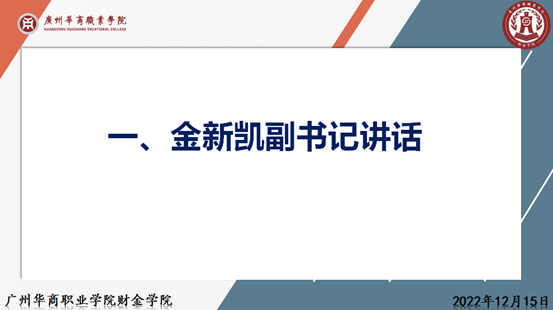 党总支金新凯副书记首先解读关于分类指导的思想,并结合财金学院人才培养方案,希望各指导老师能够通过分类指导做好20级毕业生的岗位实习指导工作。在实习过程中,全过程了解并及时处理学生的难题,给予针对性的指导。