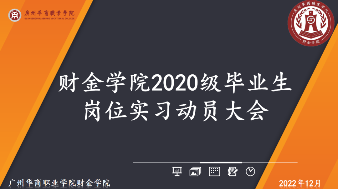为深入落实《教育部等八部门关于〈职业学校学生实习管理规定〉的通知》等文件精神及学校关于学生实习的有关规定,确保实习工作顺利开展,积极推进2023届毕业生岗位实习工作,全力促进毕业生更充分及高质量就业,财金学院于2022年12月16日-19日由实习指导老师组织开展了2020级毕业生岗位实习动员大会。