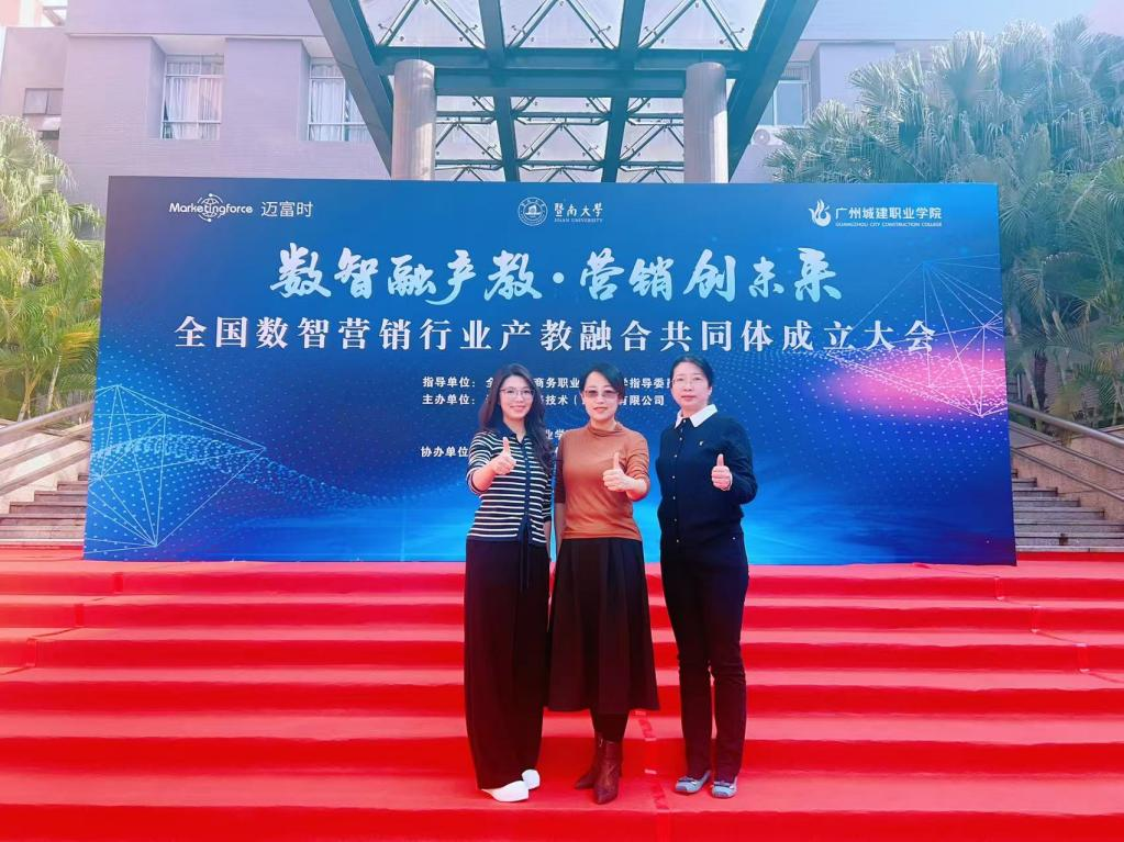 2025年12月5日,全国数智营销行业产教融合共同体成立大会在广州城建职业学院举行。广州华商职业学院低空经济与商务学院副院长张丽菠副教授、市场营销专业负责人方思若副教授、网络营销与直播电商专业负责人周碧茵老师受邀出席本次重要会议。