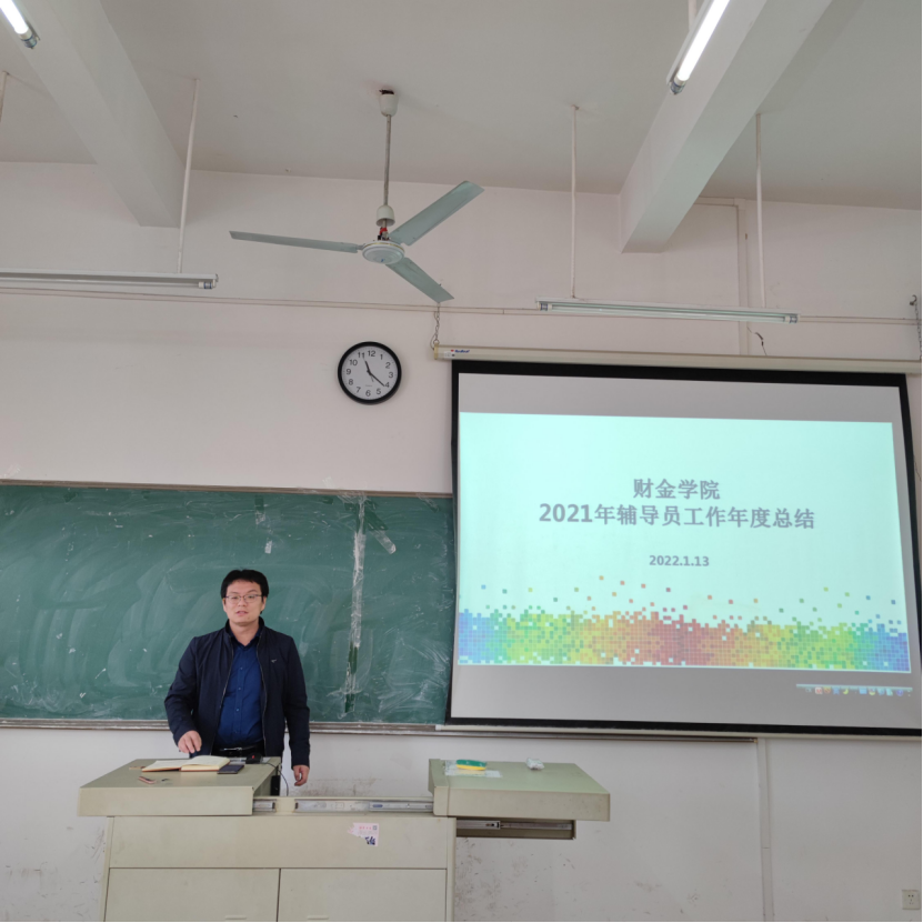 为进一步提升学工队伍建设和履职能力,全面推进财金学院2022年学生工作再上新台阶,2022年1月13日上午10:00,财金学院在博学楼C506召开2021年辅导员年终总结述职会议,会议由党总支金新凯副书记主持,全体辅导员参加会议。