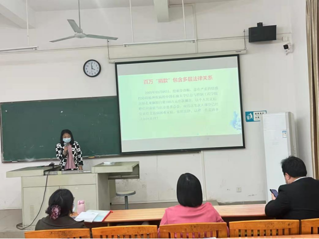 周柳颜老师对《经济法基础》这门课程进行授课讲解后,陈少兰副院长、邓一帆副教授、周贤娴主任对周柳颜老师给予了很多上课的建议,并推荐其担任经济学基础等课程的教学任务。