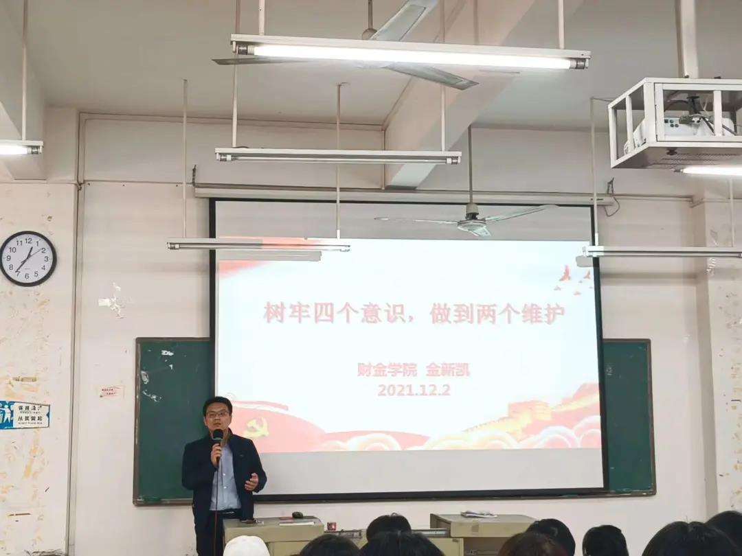 为了提高学院党团组织学生干部的能力,我院于2021年12月2日中午在博学楼C201召开了以“树牢四个意识,做到两个维护”为主题的会议。参加本次会议的有党总支金新凯副书记、第二届党团学干部以及21级班级班委。