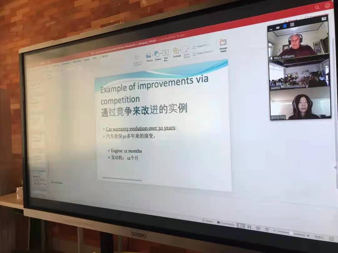 “解决客户需求”课程是每周3节课连上,首先第一节课是由澳大利亚商学院的Ryhs Williams 讲授关于客户关系管理的理论知识并穿插案例辅以解说。紧接着第二节课在中方老师周贤娴老师的组织指导下进入讨论环节,周老师将班上同学进行分组,每组都要指派一个组长、一名记录员和一名汇报者。每组都有一个对主题进行40分钟左右的探讨,最后一节课则是向全班汇报的讨论结果。