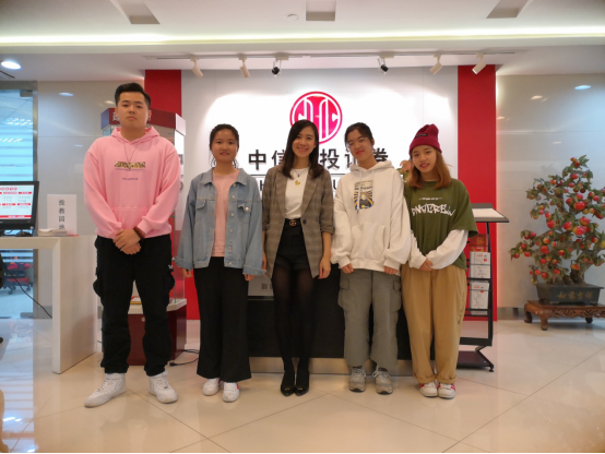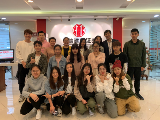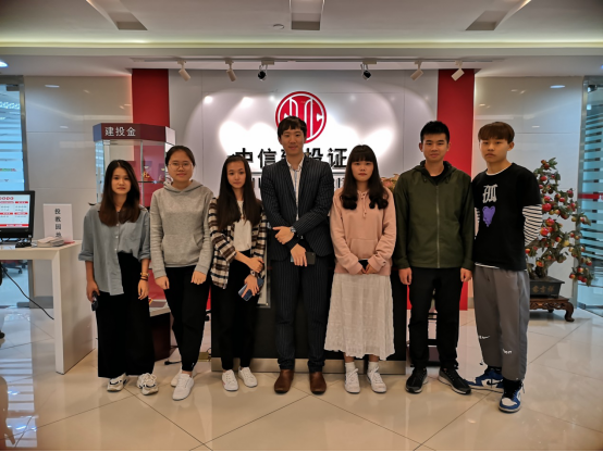 2019年4月16日下午,金融学院教师刘姗、韩玉芳带领17级学生来到中信建投证券广州中山三路营业部调研,为2019年广东省教学能力设计大赛做准备。