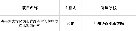 近日,2018年度广东省教育厅科研平台和项目拟立项名单公示,金融学院教师郭建的项目成功入选。这是广东省教育厅为贯彻落实《广东高校重点平台建设跃升计划实施方案(试行)》和《广东高校重大项目与成果培育计划实施方案(试行)》,结合“创新强校工程”实施的重要举措。我院能获得省厅科研课题,十分喜人!
