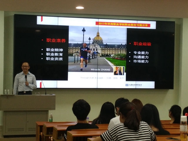 为了让学生更好的规划未来,为以后走向工作岗位作好充分准备,我系特邀请大华会计师事务所高级合伙人张卓奇先生于2017年9月22日到我系召开职业规划专题报告会。
