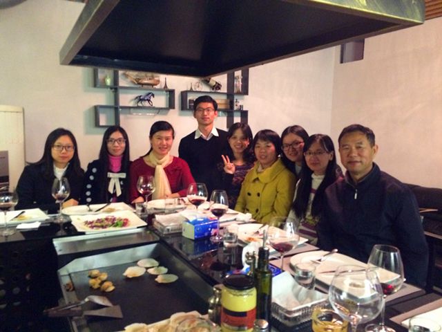 聚餐伊始,林锦妍老师就近期系里的有关精神作口头传达,并提醒各位老师按照相关的规定有质量完成,特别是接下来的评估工作更应积极配合。紧接着大概分析了教研室本学期的工作进度,着重强调期末的复习和阅卷工作,要求新进的老师要多多向有经验的老师请教,尽心尽职。然后是自由发言环节,教研室各老师纷纷对教学上的问题或是与学生相处上发现有意思的地方进行经验交流,老师们边品尝美酒边愉快地表达了自己的想法。餐桌上,师傅还教会我们如何正确拿红酒杯和如何品酒等,过程中弥漫着团结友爱的气息,相当美好的夜晚。