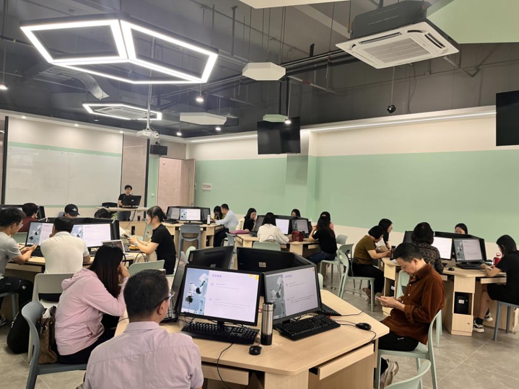 刘老师结合自身丰富的教学实践经验和深厚的专业知识,通过深入浅出的讲解和生动的案例分析,让老师们了解了跨专业综合实训课程的整体教学。活动内容丰富多样,涵盖了实训背景、教学手段、实训步骤、实训小结、实训成果应用和实训拓展等六个方面。