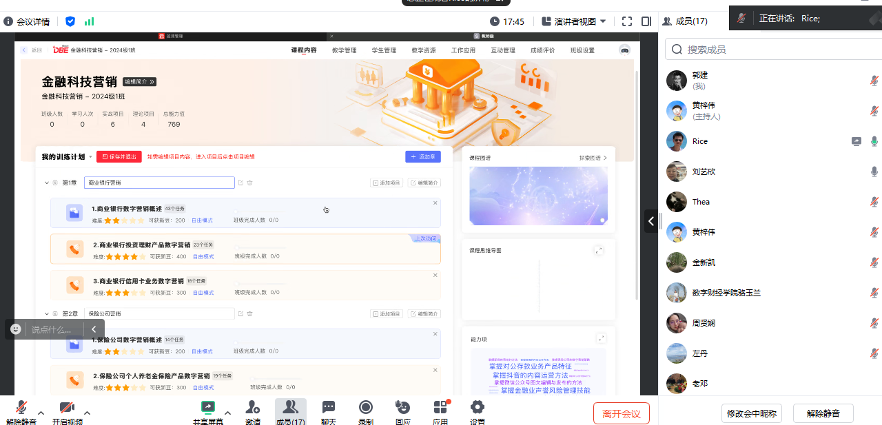 培训会特邀新道科技的张颢和黄梓伟两位专家作为主讲嘉宾,他们从教学软件的功能特点、以及如何将软件工具有效融入课程教学等方面进行了深入讲解。金融专业全体专任教师积极参与,通过腾讯会议线上同步进行的方式,广州校区和江门校区的教师们跨越空间限制,共同学习交流。培训过程中,不仅交流了丰富的理论知识,还通过实际操作演示,让教师们对教学软件有了更直观的认识和掌握。