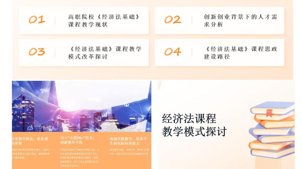 活动中,伍博宁老师依次从四个维度展开分享。首先剖析高职院校《经济法基础》课程教学现状,指出传统教学存在的不足;接着结合创新创业背景,分析当下人才对经济法知识与能力的需求;随后围绕教学模式改革,提出融入案例教学、项目化教学等创新举措;最后探讨《经济法基础》课程思政建设路径,强调将法治精神、诚信意识等思政元素有机融入教学。所有参会教师围绕课程改革这一主题进行深入交流,共探教学新路径。