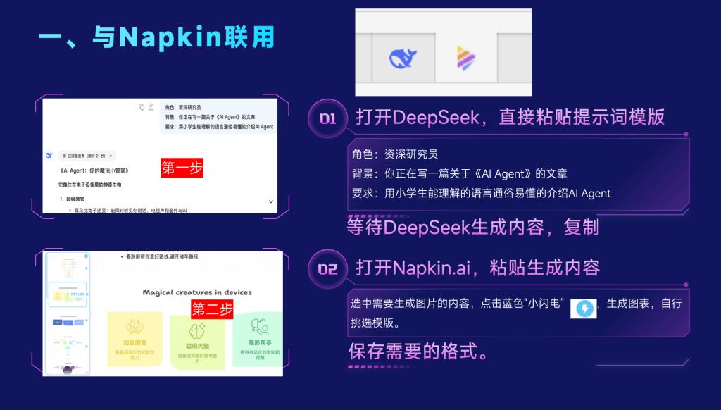 在多工具联动环节,柳老师演示了DeepSeek与Napkin.ai、Kimi、Draw.io、XMind的协同应用,包括自动生成财经科普内容、制作教学PPT、绘制技术路线图等实用场景。这些方法为课程设计、科研申报提供了新思路。