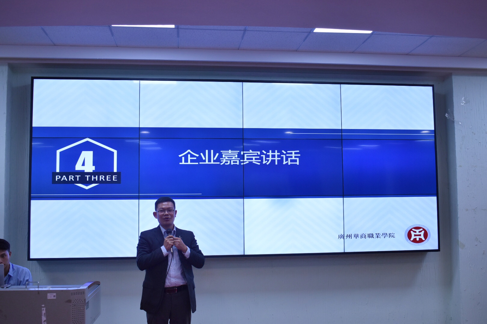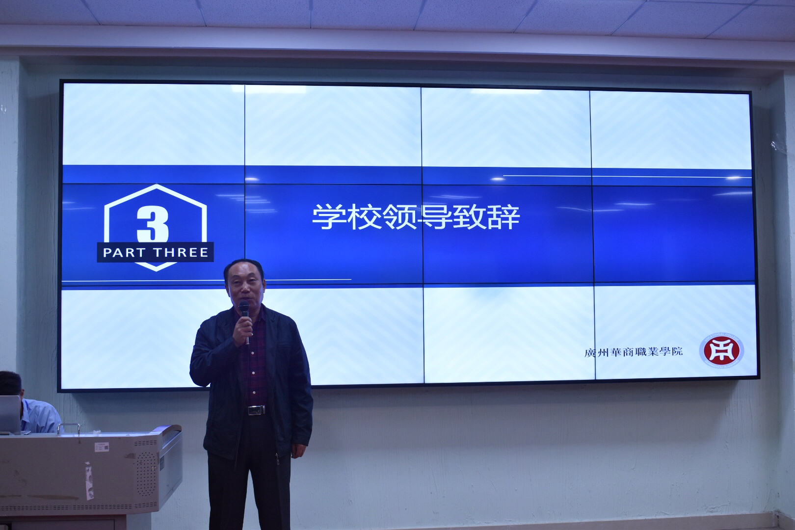 接下来,由金蝶公司代表魏佳丹总监致辞,首先,他对于各位领导对此次金蝶扬梦订单班的付出表示诚挚的感谢,并对此次能顺利加入订单班的同学们表示热烈的祝贺,他希望通过这次合作可以为学生们提供更大的平台,并提出了几点期望:1、希望同学们能保持刻苦的心态,保持高三的学习热情;2、学会如何沟通,并提升自己的人际交往能力;最后,他希望未来可以一起共同进步。
