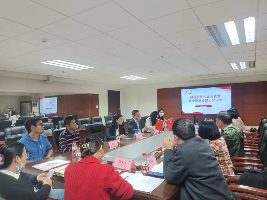 11月25日下午16:00,财金学院在行政楼715举行校企合作暨教学资源库建设交流会,参会企业嘉宾有金蝶精一信息科技服务有限公司魏佳丹财务总监、广东科学技术职业学院财金学院刘捷萍教授一行、学校代表有校企合作产业孵化处钱芳处长、财金学院李哲院长、殷建玲副院长、陈少兰副院长、专业负责人及财金学院教师代表等。