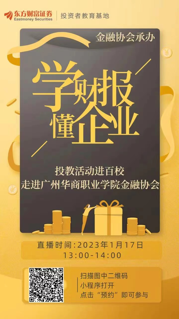 为了帮助同学们深入了解企业的财务报表,发掘财务数据背后的经济含义,金融协会特联合东方财富证券股份有限公司开展“研读公司财报·明晰企业发展”的投教活动,讲座内容将介绍三大财务报表,普及财务基础知识,帮助同学们掌握准确的财务信息,挖掘公司的投资价值。