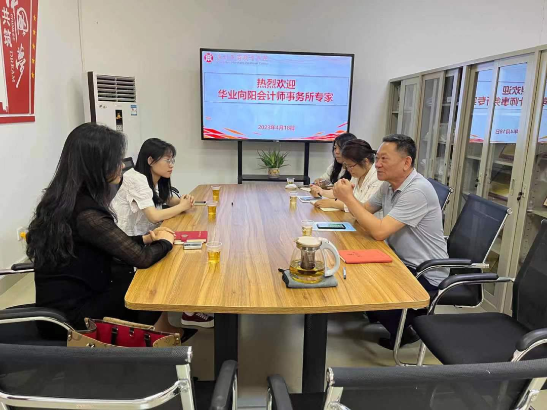 进一步促进校企合作、产教融合,探讨职业教育改革及转型发展形势下人才培养的新路径,深入开展校企合作,提升产教融合内涵。2023年4月18日上午,华业向阳(广东)会计师事务所合伙人向喜平女士,人事部陆惠怡,业务部黄彪来我院洽谈校企合作工作。财金学院院长李哲、副院长杨玲、龙双华和林汶樱老师参加了此次校企合作洽谈会议。