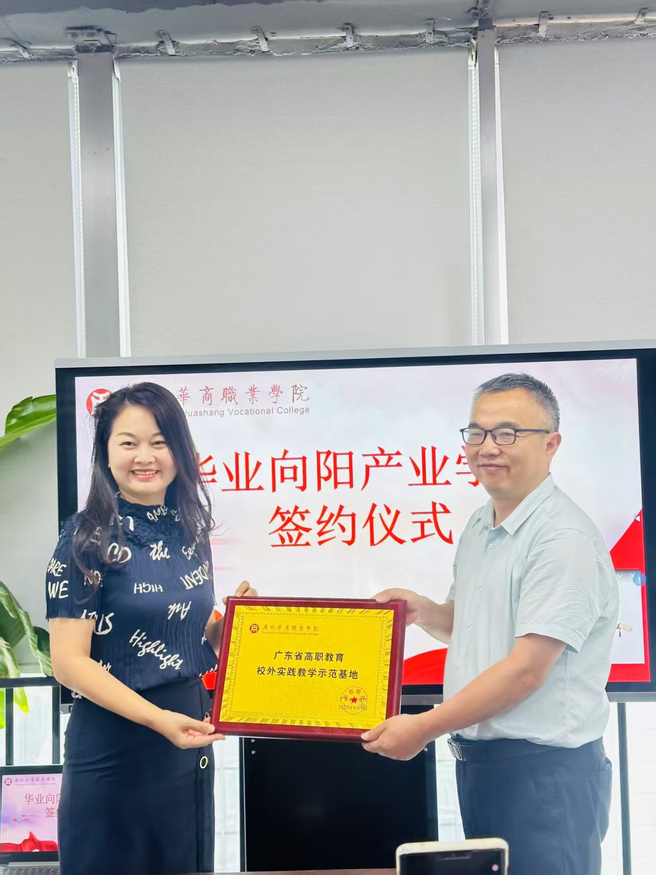 活动现场,广州华商职业学院向华业向阳授予“教师企业实践流动站”和“广东省高职教育校外实践教学示范基地”牌匾。标志着校企双方在师资互聘、实践教学、社会服务等方面迈入新阶段。